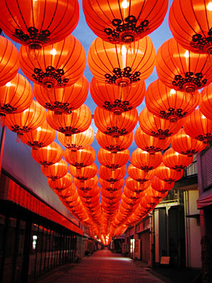 今年も秋芳洞商店街通りに 2002個のランタンが彩り 夕涼み客の目を楽しませてくれています 期間は7月20日(土)〜8月19日(月)まで 撮影 8月6日