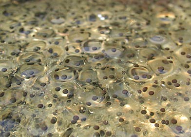 水面に漂う卵核から、もう2,3日でオタマシャクシに。