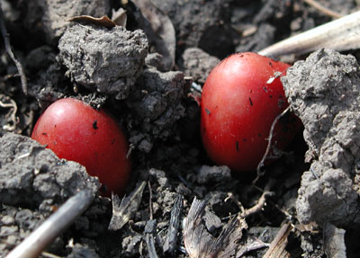 山焼きから2週間、台地の野草たちの芽吹きも始まり、 黒い台地から真っ赤なベニヤマタケが覗き始めました。 撮影 3月8日