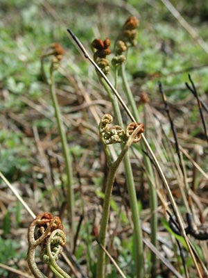 ワラビが草原の暖かい所ではこんなに出ています。 もう一週間もすると全域で出てくるでしょう。 撮影 3月30日